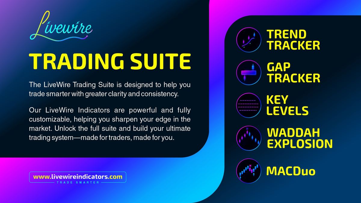 The Livewire Trading Suite is designed to help you trade smarter with greater clarity and consistency. Our Livewire Indicators are powerful and fully customizable, helping you sharpen your edge in the market. Unlock the full suite and build your ultimate trading system - made for traders, made for you.